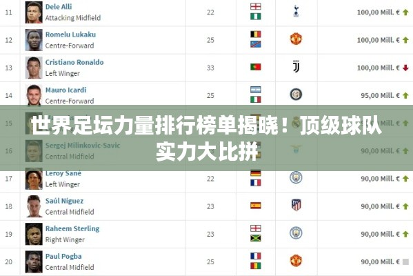 转载请注明来自专业的汽车服务平台,本文标题:《世界足坛力量排行榜单揭晓!顶级球队实力大比拼》